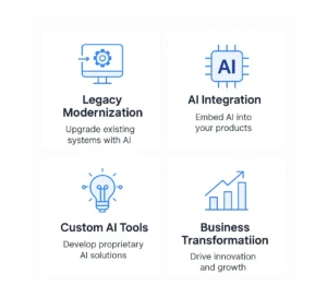 We modernize legacy systems, embed intelligence where it matters most, and help enterprises transform operations, products, and business models through AI-driven innovation.